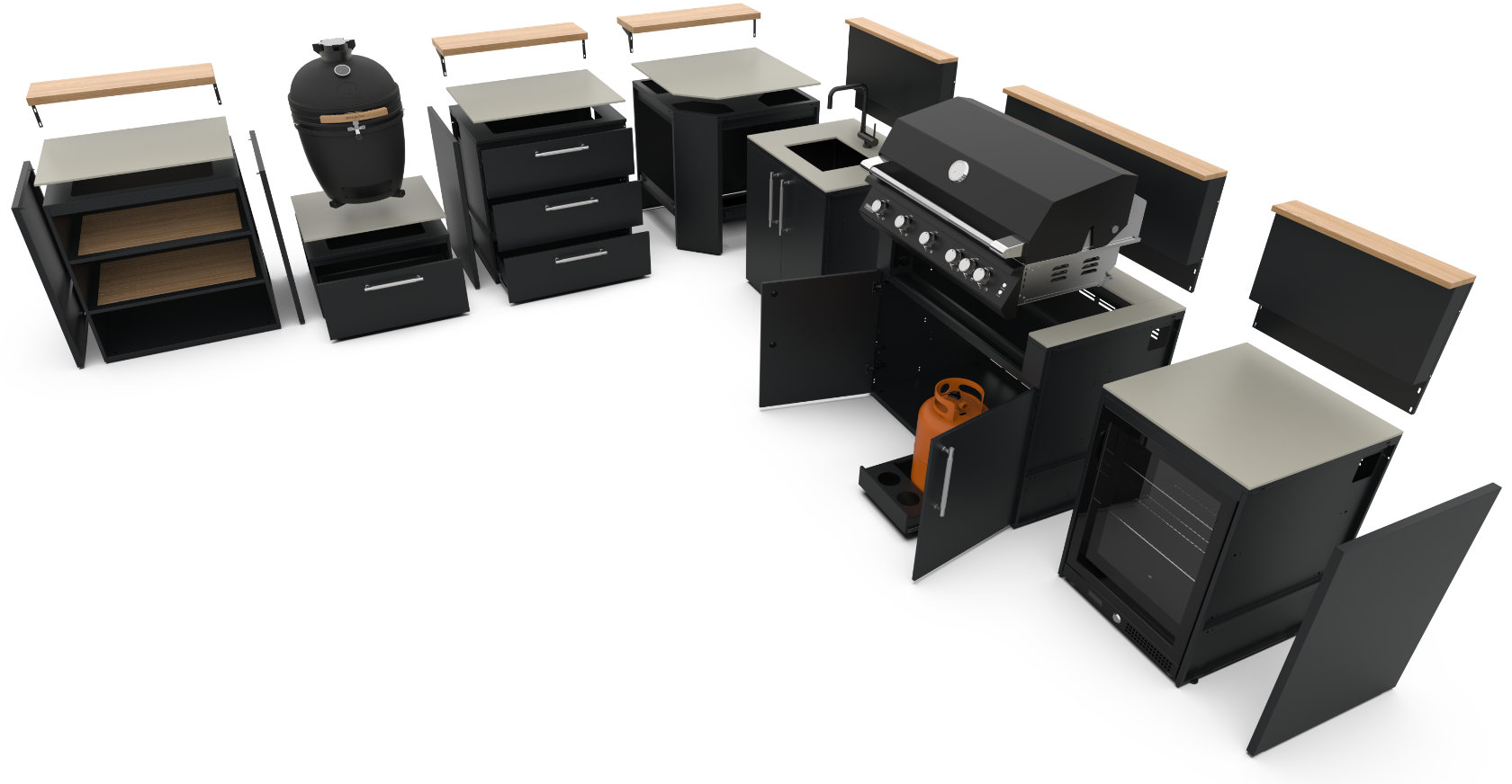 Brabura bietet verschiedene Koch­elemente und Ausstattungen – je nach Modell und Konfiguration. So entsteht genau die Outdoor Küche, die zu Ihrem Kochstil passt.